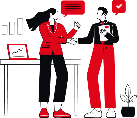 Illustrations should use thin linework combined with flat colors from the core brand palette (red, white, and black). Avoid gradients, shading, or unnecessary effects. The style should remain minimal and clean.