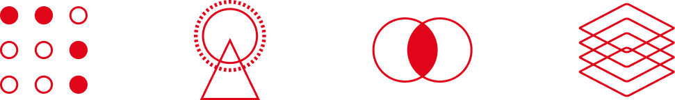 A subtle radial pattern of ellipses is used on light backgrounds. Opacity increases gradually as the pattern expands outward. Ellipses may also be arranged in alternative layouts such as spirals or waves to complement different compositions.